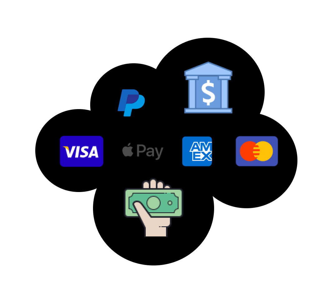 Transferencia bancaria | Visa, Mastercard, American Express, Apple Pay | PayPal